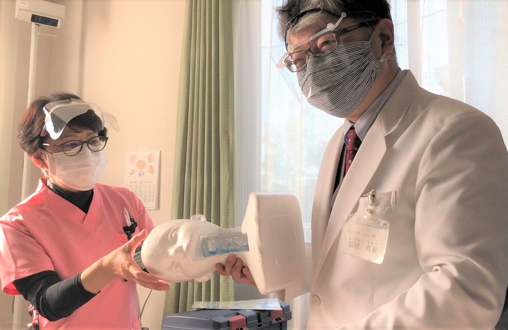 写真で使用している模型は、福村先生のお母さんの喉を3Dプリンターで再現したものだそうです。
